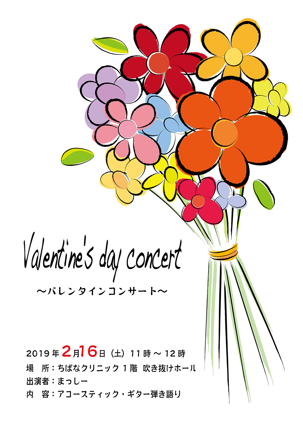 まっしーさんによるバレンタインコンサートを以下の通り今年も開催します。みなさんお誘い合わせのうえ、是非ご鑑賞ください。