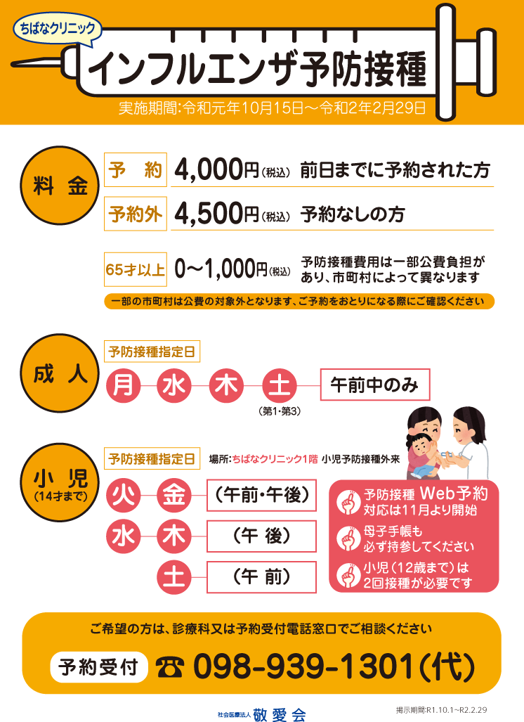 小児インフルエンザ予防接種のご予約は、