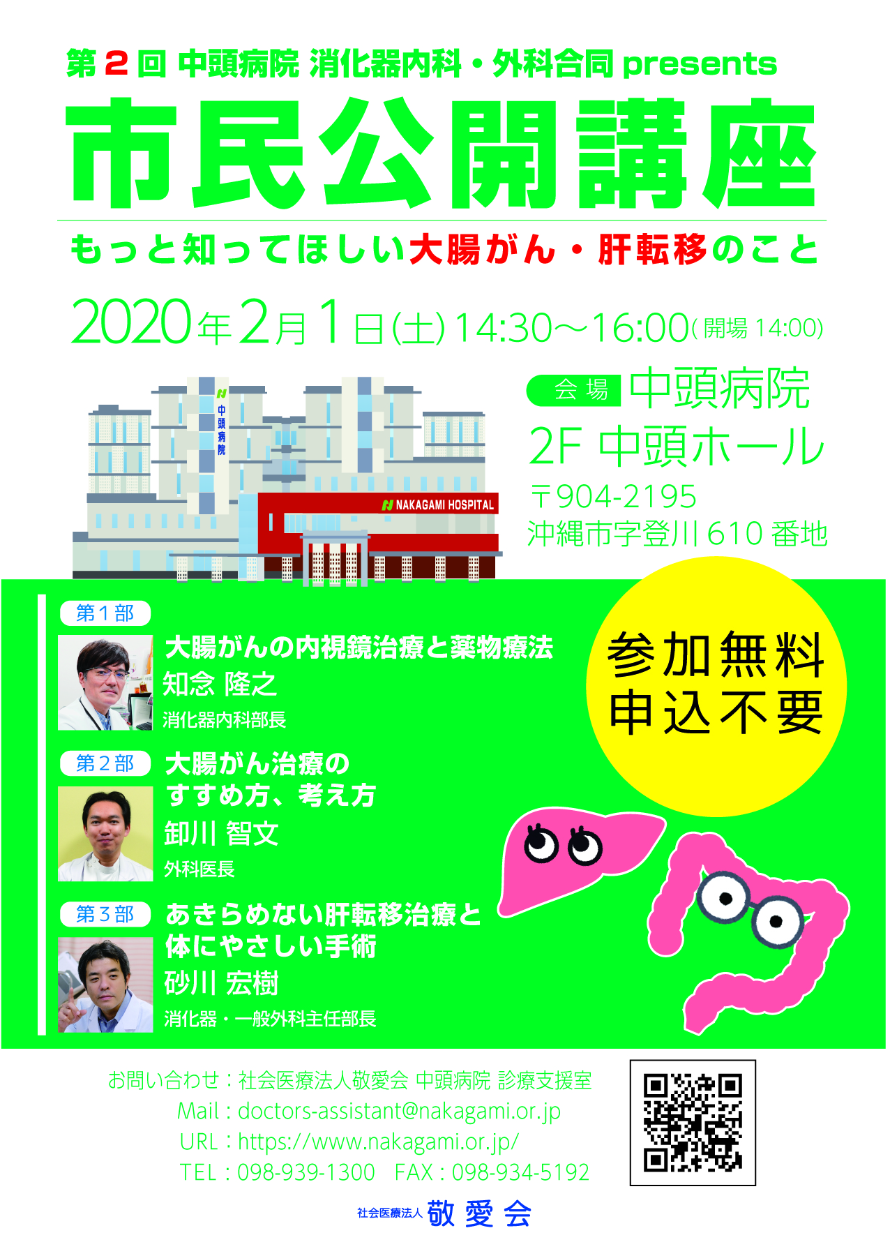 同法人 中頭病院では「もっと知ってほしい大腸がん・大腸がん肝転移のこと」をメインテーマに、第2回市民公開講座を開催します!