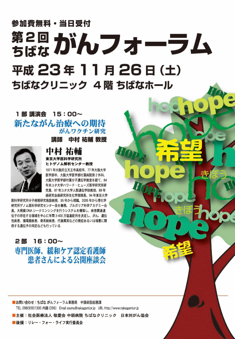 問合せ:ちばな がんフォーラム事務局 中頭病院総務課