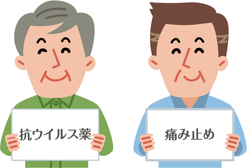 痛み止めによる治療はあくまでも痛みに対する治療であり、帯状疱疹そのものを抑えるためには抗ウイルス薬による治療が必要となります。