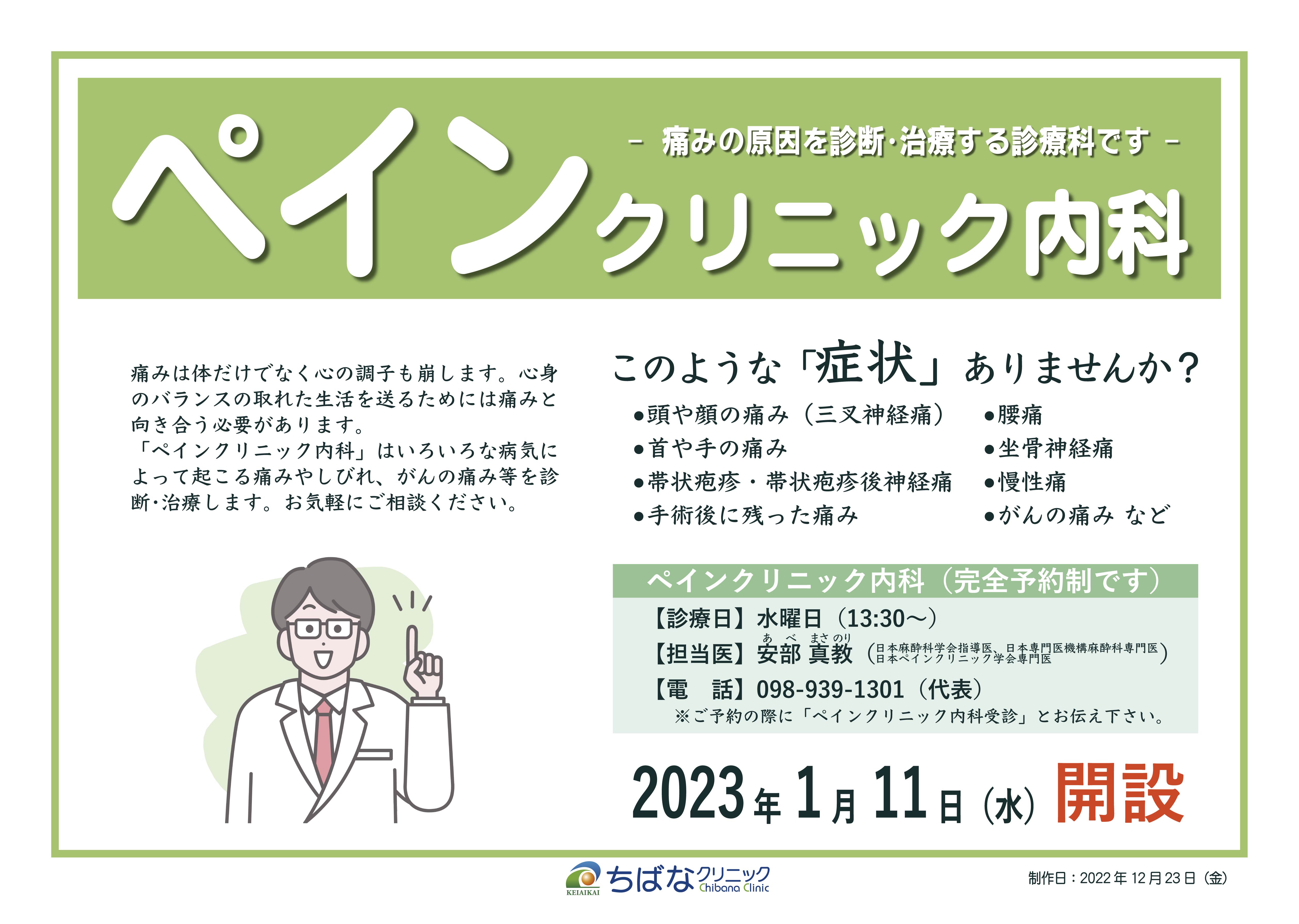 ペインクリニック内科 開設